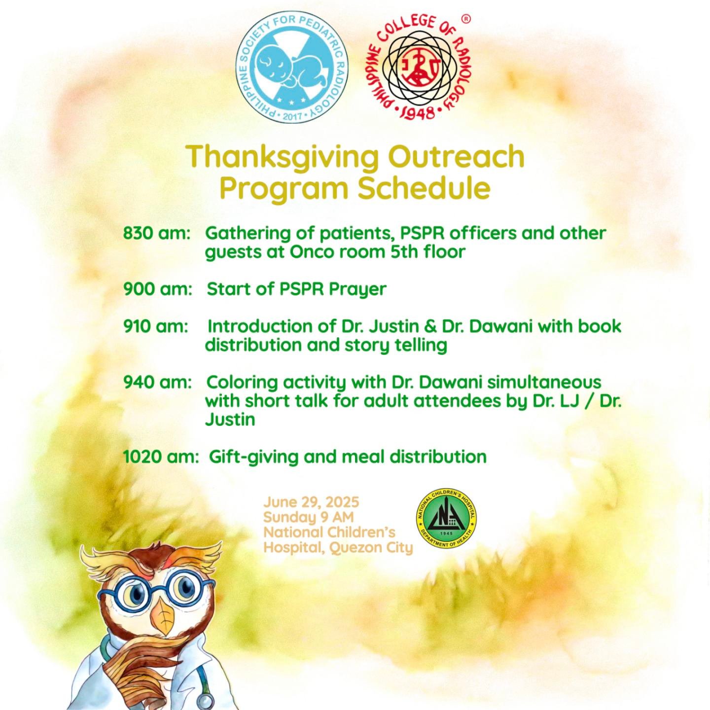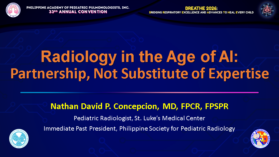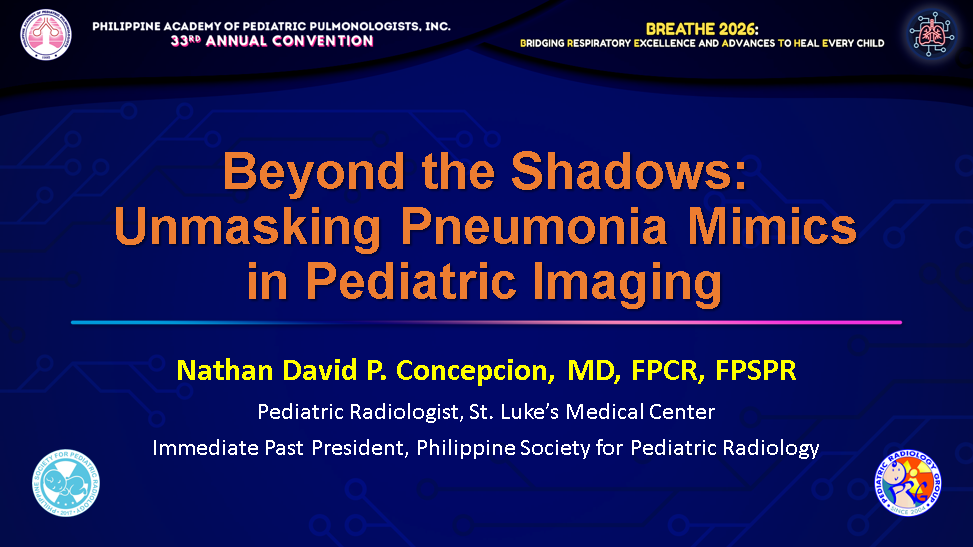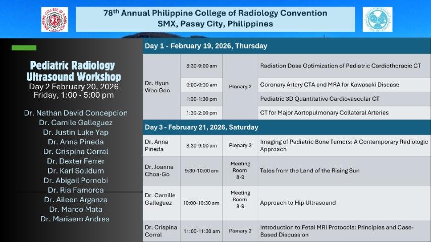Organizers: Philippine College of Radiology (PCR), Ultrasound Society of the Philippines (USP), Computed Tomography-Magnetic Resonance Imaging Society of the Philippines (CT-MRISP) and Philippine Society for Pediatric Radiology (PSPR) in collaboration with the World Federation of Pediatric Imaging (WFPI) and International Society of Pediatric Thoracic Imaging (ISPTI)