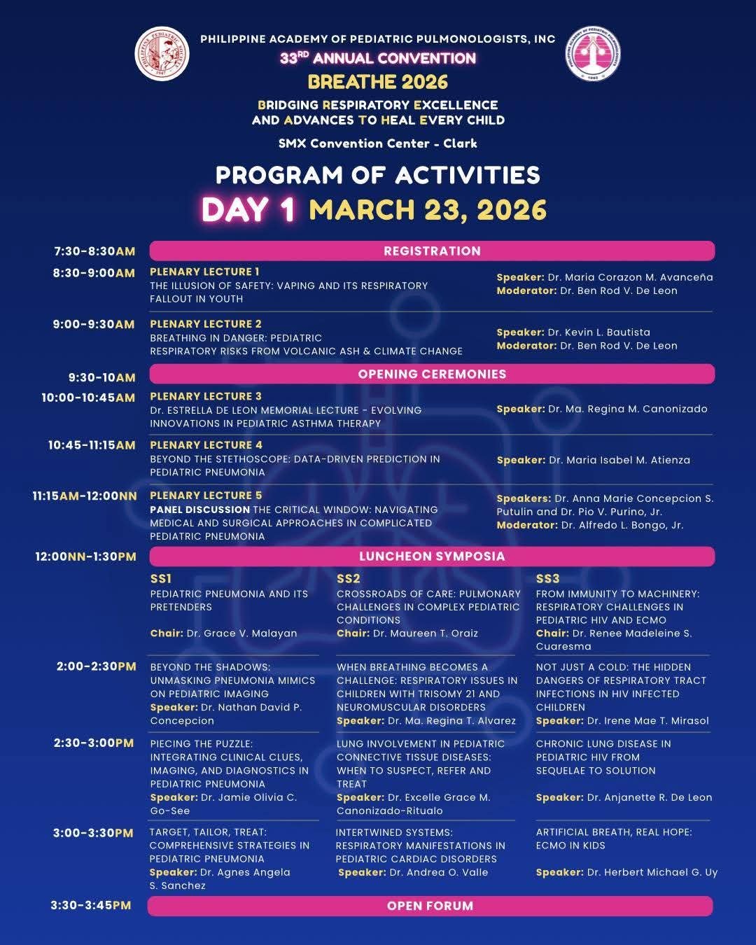 Day 1, Main Convention, March 23, 2026: “Pediatric Pneumonia and its Pretenders“